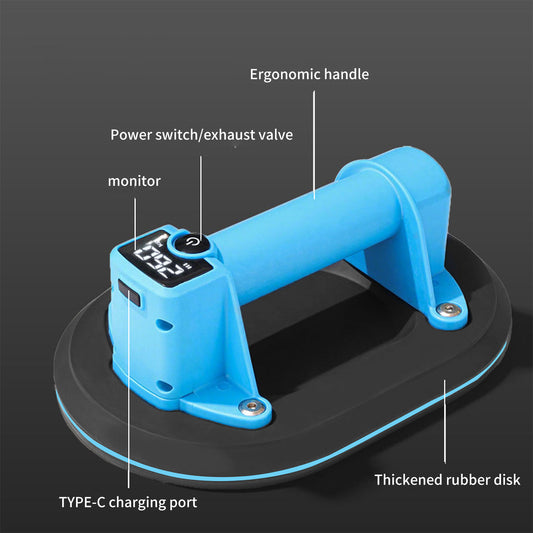 Levantador de ventosa a bateria com visor digital, ventosa elétrica a vácuo, elevador de azulejos, borracha de dupla camada, carga segura de 200 kg, para azulejos, vidro, mármore e aquários.