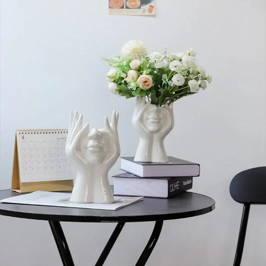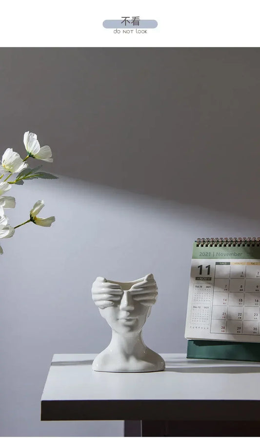 Vasos de cerâmica com rosto humano para decoração de casa, escultura de arte criativa, cabeça humana abstrata, vaso de plantas e flores para sala de estar.