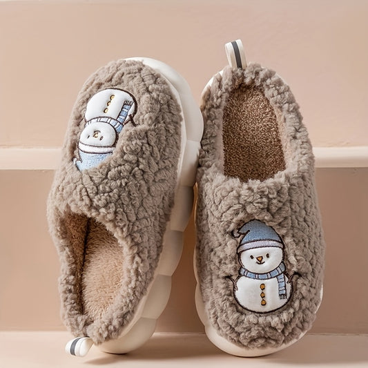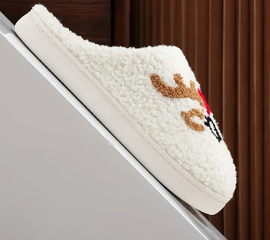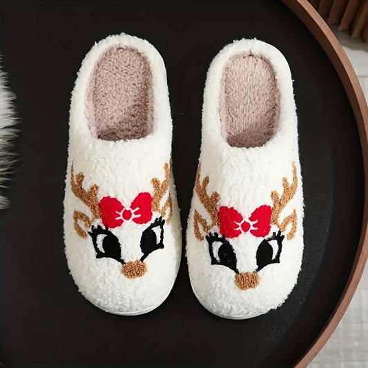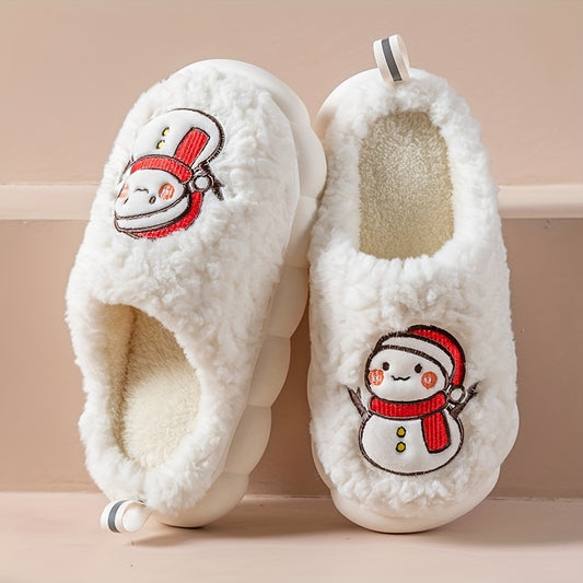 Pantufas felpudas com estampado de árvore de Natal, chinelos de inverno fechados e quentinhos para usar em casa, pantufas aconchegantes de sola macia e felpuda.