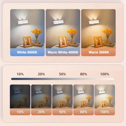 Rechargeable Wireless Wall Sconce with 3 Color Temperatures & 360° Rotation - Magnetic Mount, USB Charging, Touch Control for Bedroom, Indoor Use, Modern Minimalist Design, Rechargeable Wall Light, Bedroom Lighting, Sleek Wa