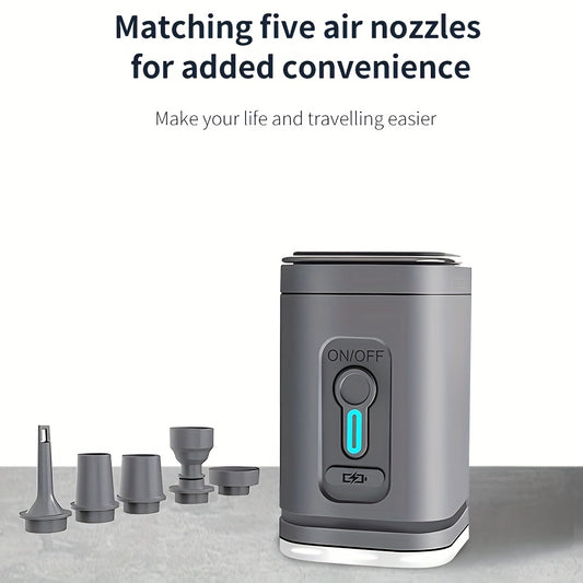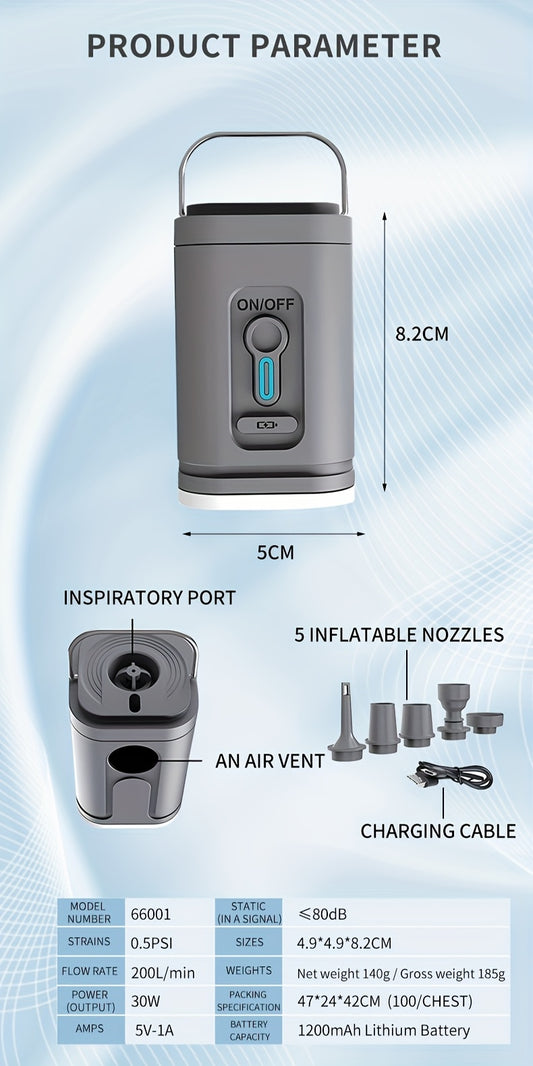 2-in-1 Portable Cordless Electric Air Pump with Built-in LED Light - Rechargeable Lithium Battery Outdoor Camping Gear for Inflatables, Tents, and Emergency Lighting