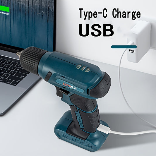 1set Of Accessories 8V Lithium Drill Mini Electric Drill Cordless Drill USB Charging Screwdriver Screwdriver Lithium Electric Drill LED Lighting Electric Drill Electric Tools For DIY Projects DIY Drill