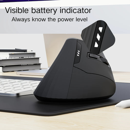 2.4Ghz Vertical Wireless Mouse with Visible Battery Display, 6 Keys, Ergonomic, Plug and Play for Office and Study