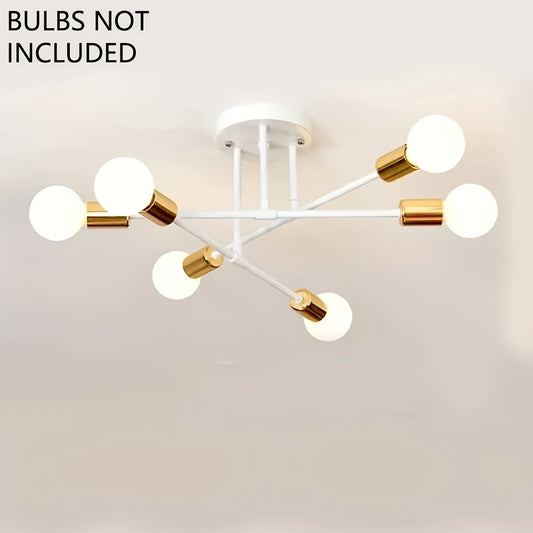 1pc Black Modern 4-Light Chandelier, Iron Branch Ceiling Light For Kitchen, Hallway, Bedroom, E27 Bulb Base Bulb Not Included, Home Lighting Accessory