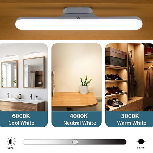 30cm / 11.81inch Cabinet LED Light, Touch Control, 3 Color Modes Dimmable Lights, USB Rechargeable Light Bar, 1200mAh LED Bed Lights, Light Strip for Mirror, Night Light Stick on Lights for Mirror, Kitchen, Closet, Bedside, D