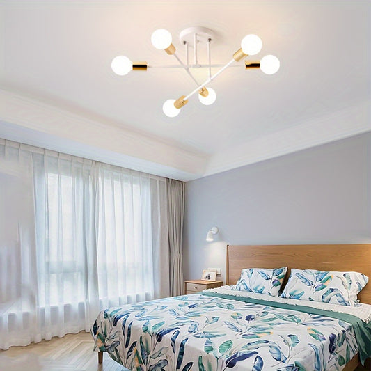4-Light Industrial Semi Flush Mount Ceiling Light Fixture, Modern Sputnik Chandelier Light Fixtures, Industrial Kitchen Light Fixtures Ceiling Mount, Dining Room Light Fixture for Bedroom Hallway, E26 E27 Base(Bulbs Not Inclu