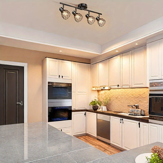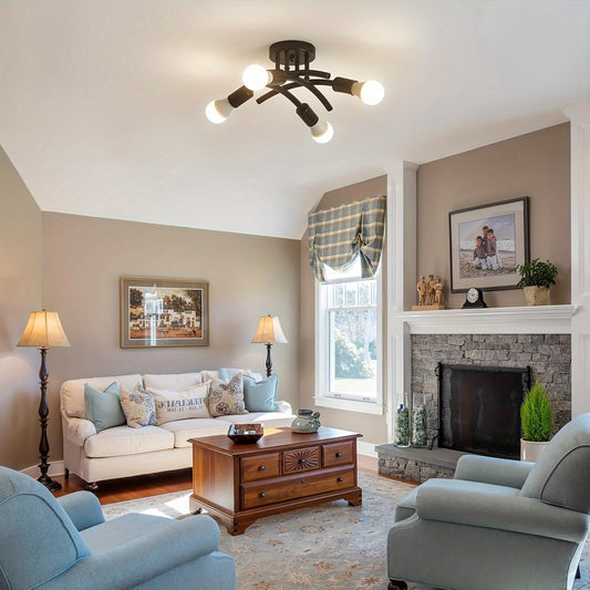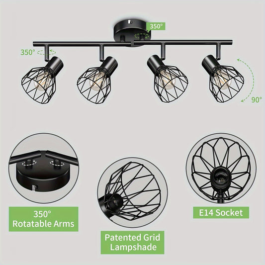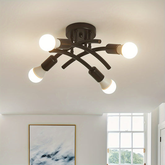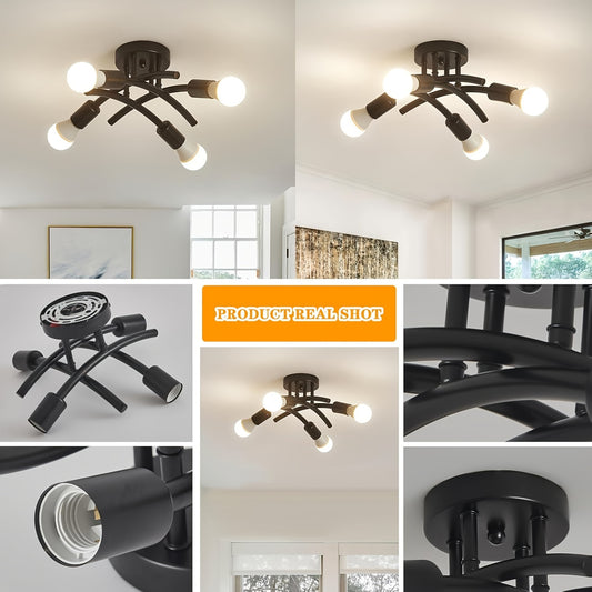 AMANSOUR 4-Bulb LED Ceiling Spotlight - Retro Black Metal Semi-Flush Mount Ceiling Light with Polished Finish, E14 Base, No Bulbs Included, Ideal for Kitchen, Living Room, Bedroom, Office & Hotel Decor, Ceiling Lights for Hom