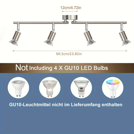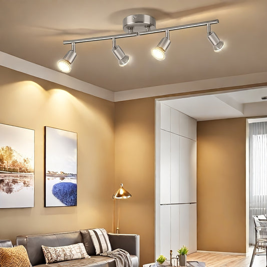 AMANSOUR Modern 4-Flame LED Ceiling Light, 330° Rotatable Spotlight, Semi Flush Mount, Matte Nickel, Cast Iron, Switch Control, Hard-Wired 110-240V, for Kitchen, Living Room, Bedroom - No Bulbs Included