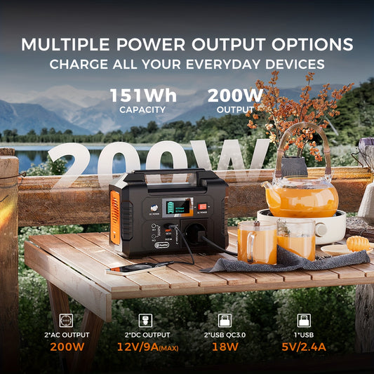200W Solar- Portable Power Station & 40800mAh Solar Generator with 230V AC Outlet, 2 DC Ports, 3 USB Ports, Pure Sine Wave Inverter,, Over-Voltage/Over-Current/Over-Heat/Over-Vibration, Lightweight & Compact for Camping, RV,