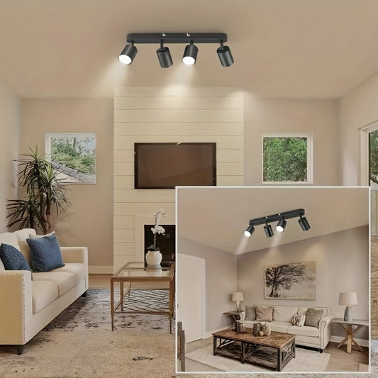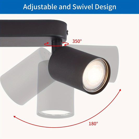 4-Head Adjustable Spotlight Ceiling Light Fixture - Modern Black Metal Semi-Flush Mount with 4 Adjustable Arms, 110-240V Hardwired, No Battery Needed, Easy Installation for Living Room, Bedroom, Office, Kitchen, Bathroom, Cei