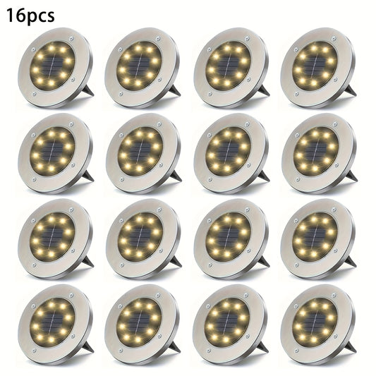 4/8/12/16pcs Solar Buried Light, IP65 Outdoor Landscape Lights, Solar Disc Lights, Garden Pathway Lighting, Solar Floor Lamps, 8pcs LED Solar Ground Lights for Roads, Courtyards, Walkways, Patios, Lawns