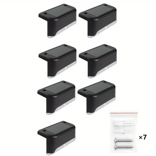 7pcs Solar Deck Lights by HOTU - Warm White LED for Outdoor Stairs, Fence, Garden, Balcony, Yard, Patio & Pathway Decor -, Commercial Emergency Luminaires, Battery-Powered, Plastic Shade, Solar Lights for Outside