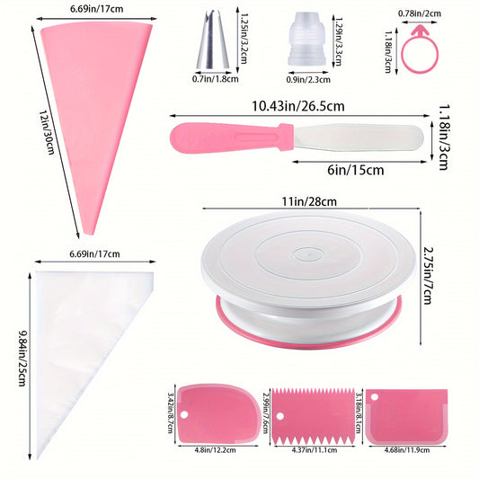 76pcs Stainless Steel Piping Nozzles Cake Turntable Set, 12 Nozzles, 1 Turntable, 2 Reusable Piping Bags, 50 Disposable Piping Bags, 4 Silicone Rings, 2 Converters, 2 Icing Spatulas, 3 Icing Scrapers, Cake Decorating, Nozzles