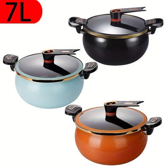 7L Large Heavy-Duty Iron Stock Pot & Dutch - 26cm/10" Multi-Functional Cooker with Lid, Sturdy Black/White/Golden/Brown/Teal/Gray/Green Exteriors, Compatible with / Stoves for Boiling, Simmering, Steaming, Frying