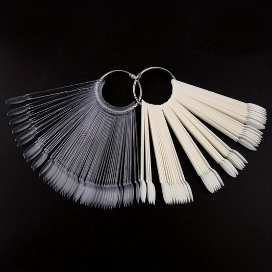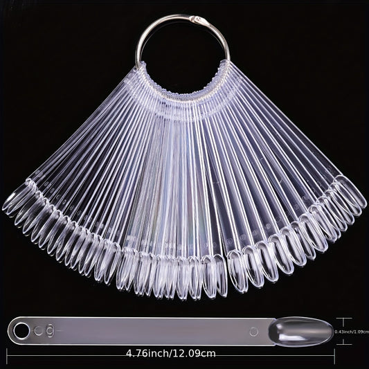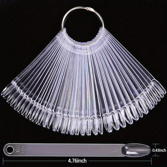 Conjunto de 50 pontas transparentes para exposição de unhas, incluindo amostras de verniz gel, paleta de cores e ferramentas para a prática de manicure.
