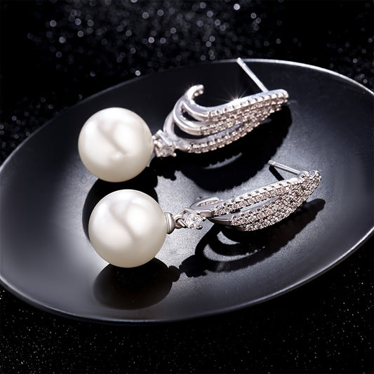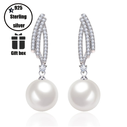 A Pair Of 925 Silver Women'S Fashionable Pendant Earrings Set With Exquisite Freshwater Pearls, Hypoallergenic Bohemian Style Jewelry Accessories, Women'S Gift With Boutique Gift Box Included