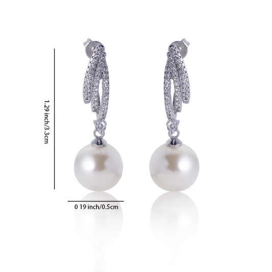 1 Pair of Women's Earrings, S925 Sterling Silvery Shambala Spiral Studs, Sparkling Blingbling Double Ball Dangle Earrings for Parties and Weddings, Hypoallergenic