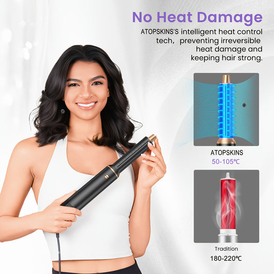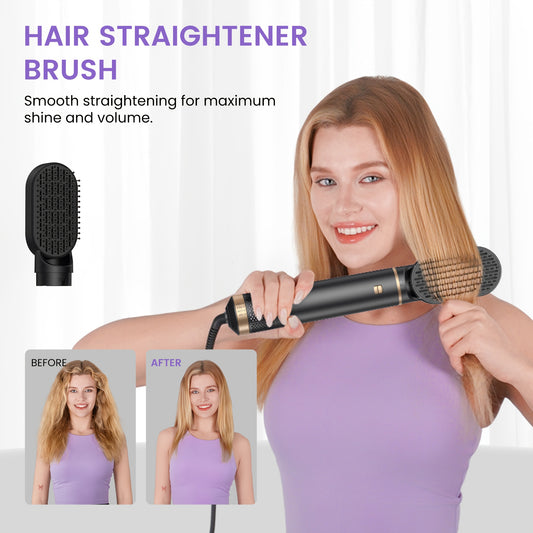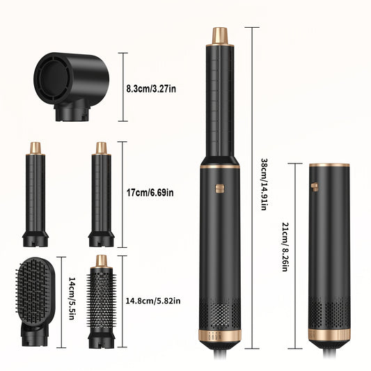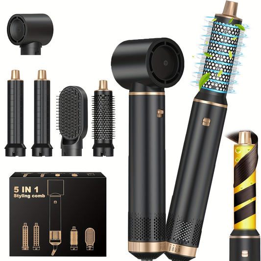 Escova de modelação de ar quente 5 em 1 com design destacável melhorado, incluindo modelador de caracóis e varinha de ar quente de 1000 W, equipada com ficha padrão europeia.