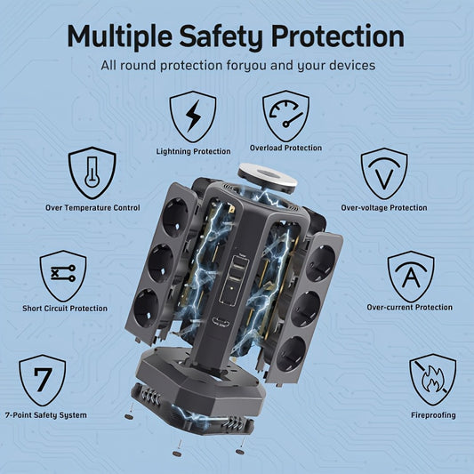 Múltiplas tomadas 12-Outlet 4000W com USB-C 20W