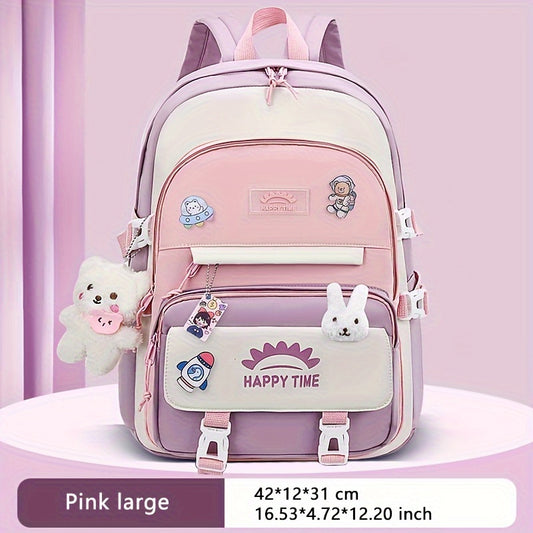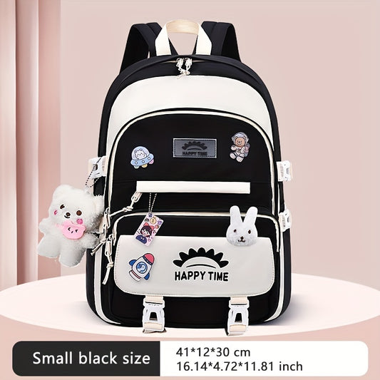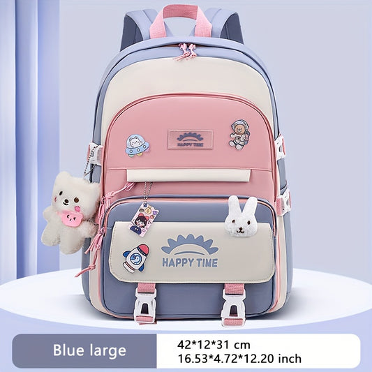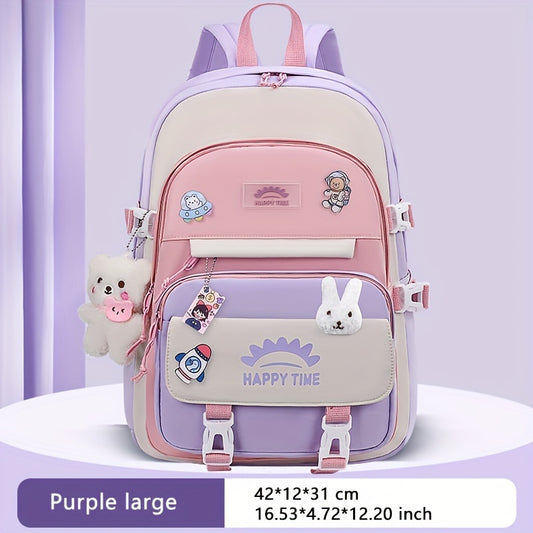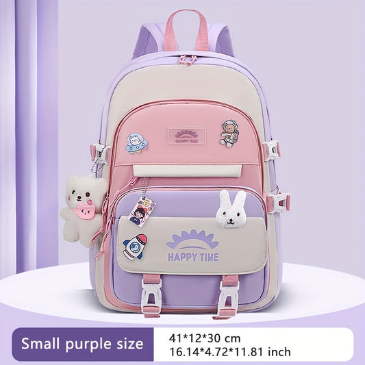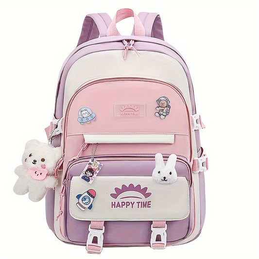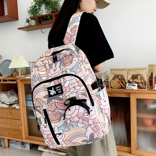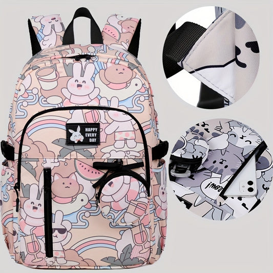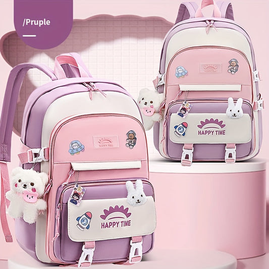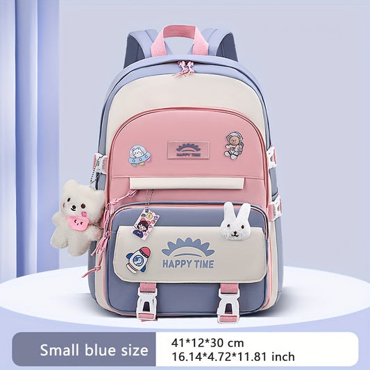 Chic Nylon Backpack for Girls - Cute Cartoon Design, Adjustable Straps, Lightweight backpack, Perfect for Elementary to High School Students