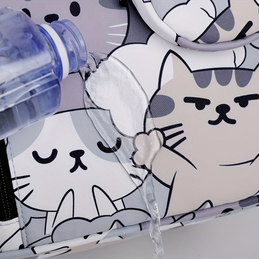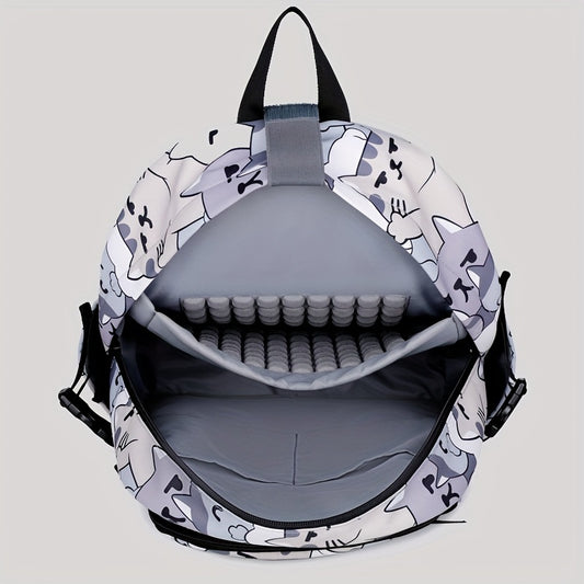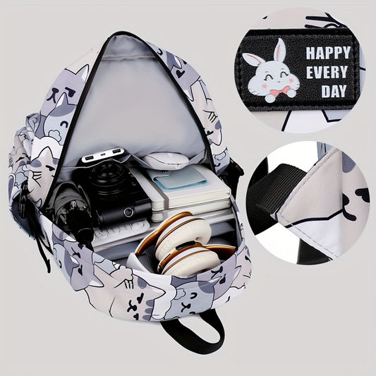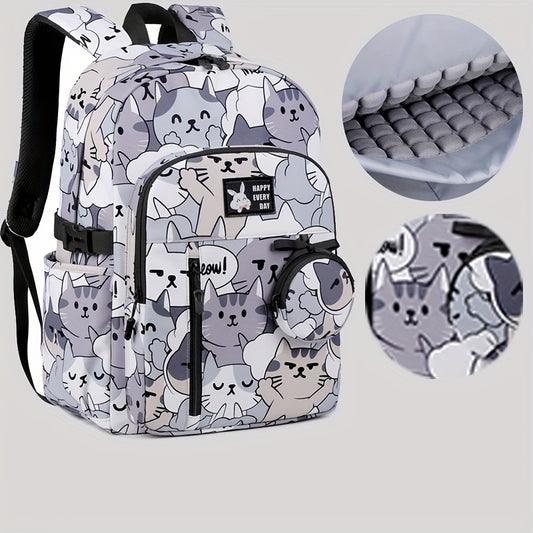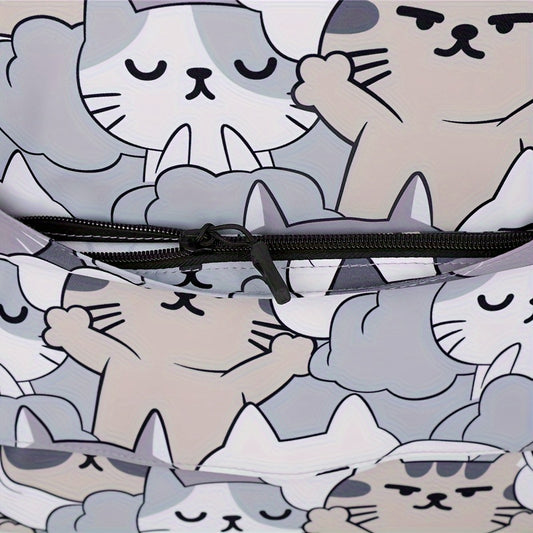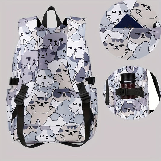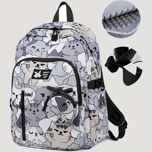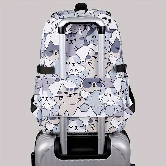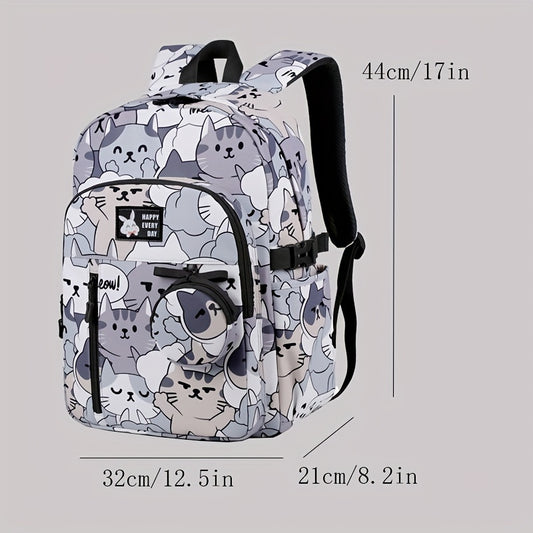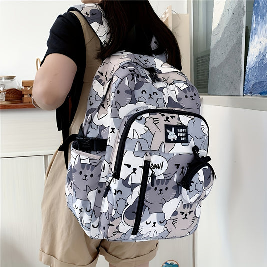 Casual Fashion Cartoon Cats Print Knapsack With Adjustable Strap And Large Capacity, Zip Up, Trendy Backpack For Travel And School