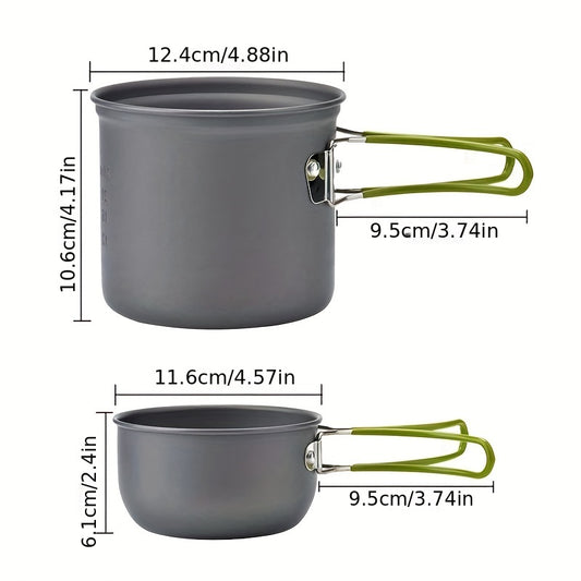 Camping Cookware Mess Kit 1-2 Person, Portable Pan Set, Fork Spoon Kit For Backpacking, Hiking, Picnic And Camping