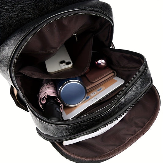 1pc Stylish Soft Women’s Backpack - Large Capacity, Lightweight with Adjustable Straps, Black, Perfect for Daily Commute & Student Use, Travel Backpack