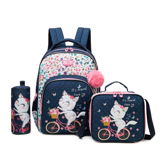 Adorable Girls Backpack 3pcs Set with Lunch Bag and Pencil Case Kids Carry On Backpack School Essentials Playdate Adventures Back to School Gift