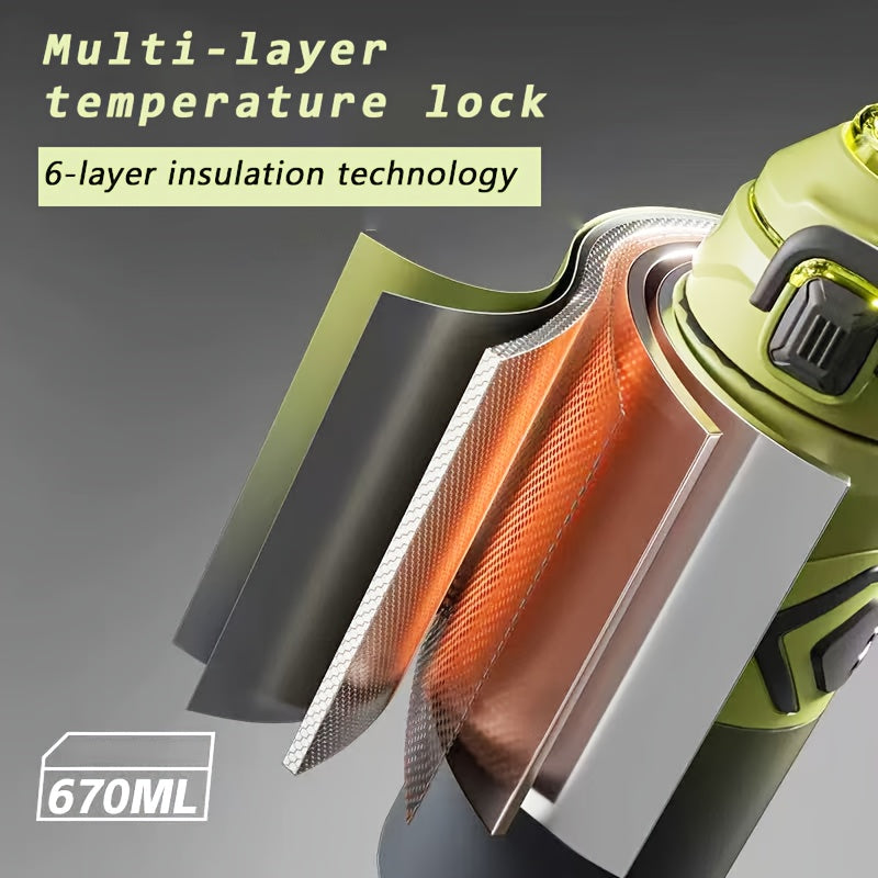 1 Large Capacity 316 Stainless Steel Insulated Sports Water Bottle, 670ml/22oz Portable Carry Handle Vacuum Insulated Bottle, Outdoor Travel Camping Hiking Gym Drinking Cup with Leakproof Anti-Slip Design and Flip Lid - Perfe