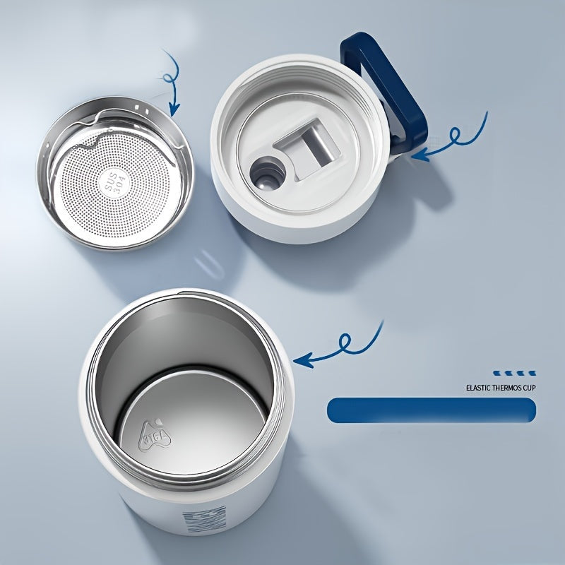 1pc 780ml/28oz Stainless Steel Insulated Cup with Handle, Double-Layer Vacuum Insulated Coffee Cup, Leak-Proof and Drop-Proof with Lid and Straw, Perfect Holiday Gift for Friends, Suitable for Outdoor Fitness, Camping and Tra