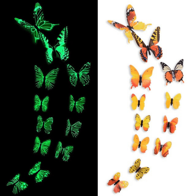 12pcs Luminous Butterfly Wall Decals, Contemporary Style 3D Glow in the Dark Stickers, Reusable High-Glossy Plastic Animal Theme Irregular Shape for Living Room Bedroom Home Decor, Butterfly Decorations