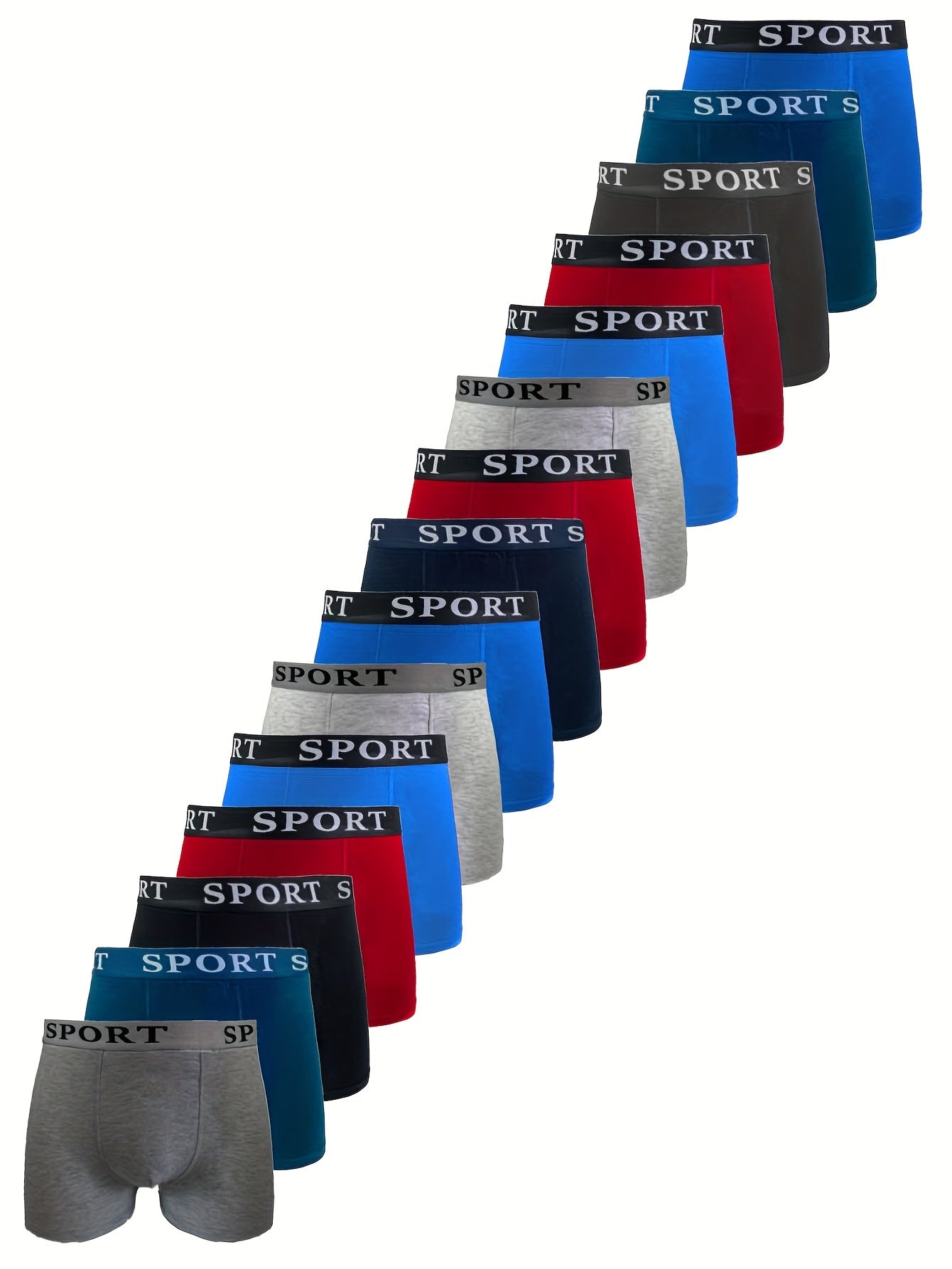 12pcs Men's Cotton Solid Color Underwear Boxers, Casual Boxer Briefs Shorts, Breathable Comfy Stretchy Underwear Boxer Briefs