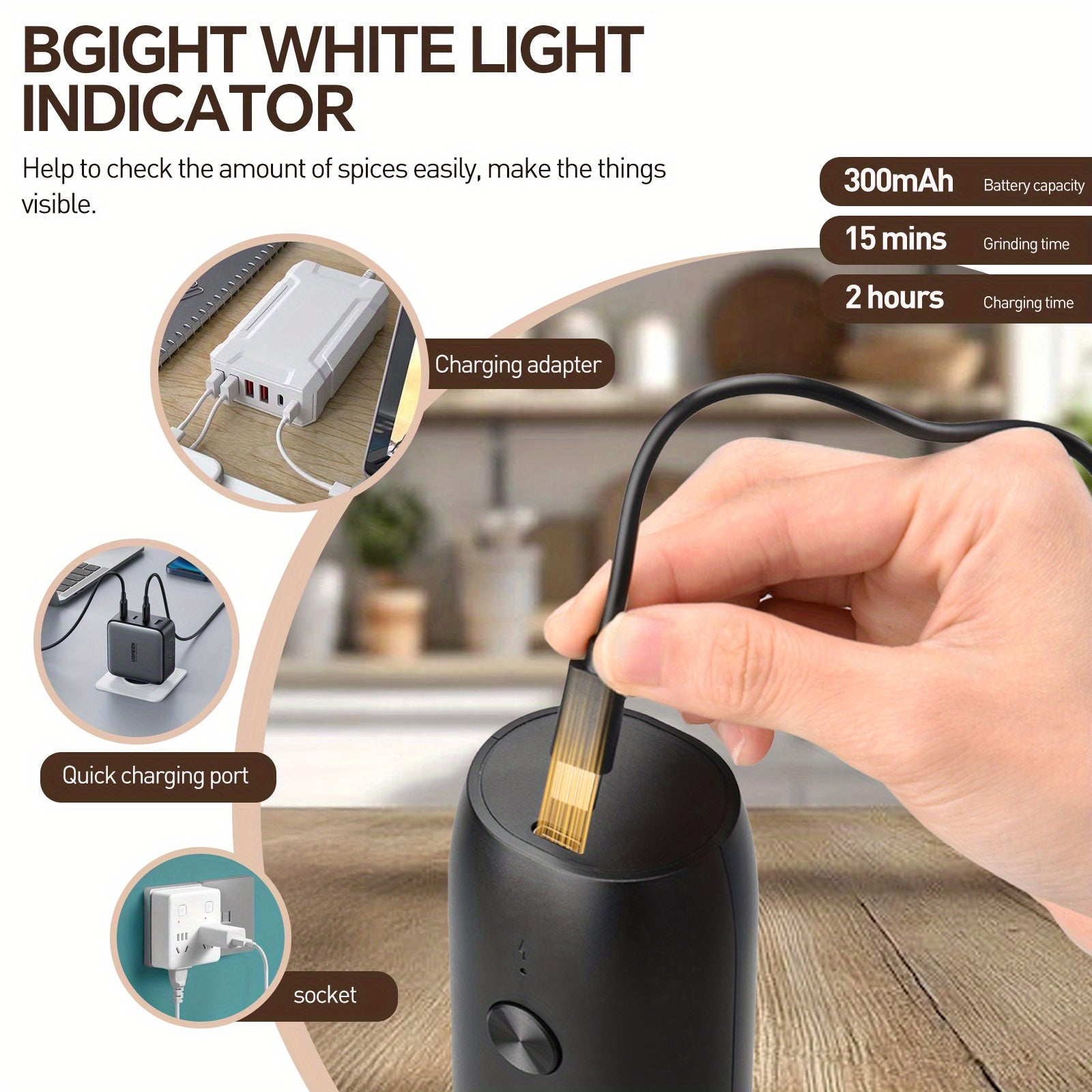 1pc/2pcs Option, Rechargeable Electric Salt And Pepper Grinder, Automatic Salt And Pepper Grinder with LED Light, Adjustable Coarseness, Large Capacity, Suitable for Home Kitchen Barbecue, Restaurant, Outdoor, Wedding Gift