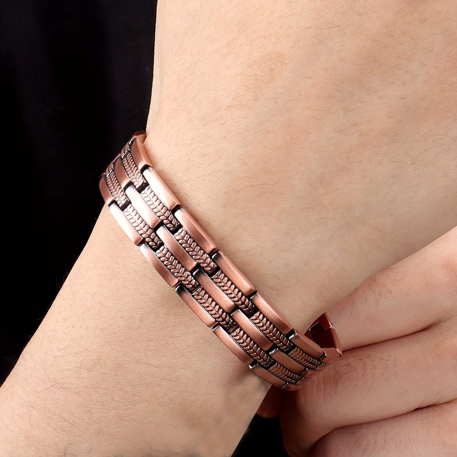 Pulseira magnética para homem em cobre puro 99,99%, estilo casual com ferramenta de ajuste, jóia ideal para oferecer ao pai e avô no Dia do Pai ou aniversário.