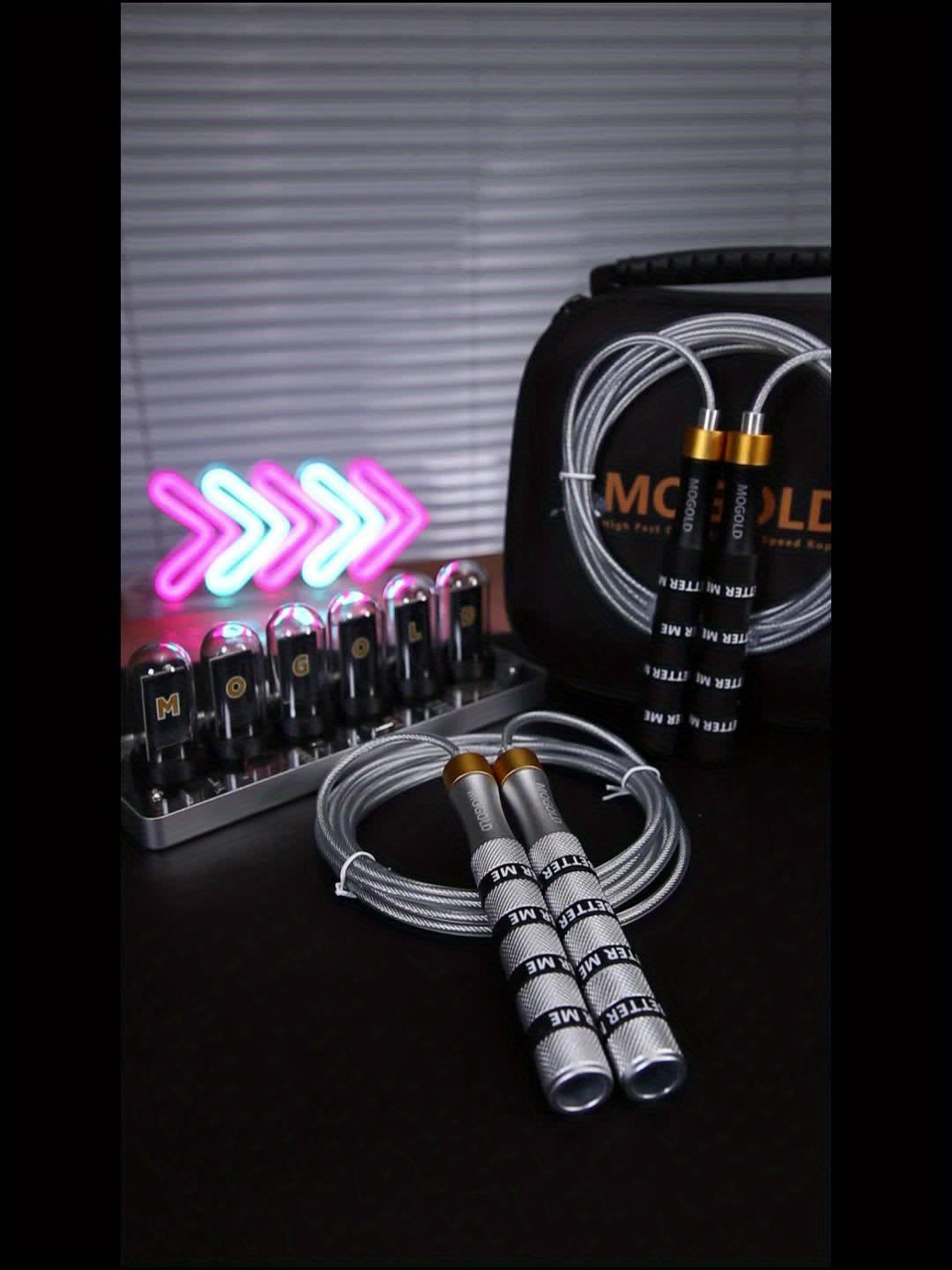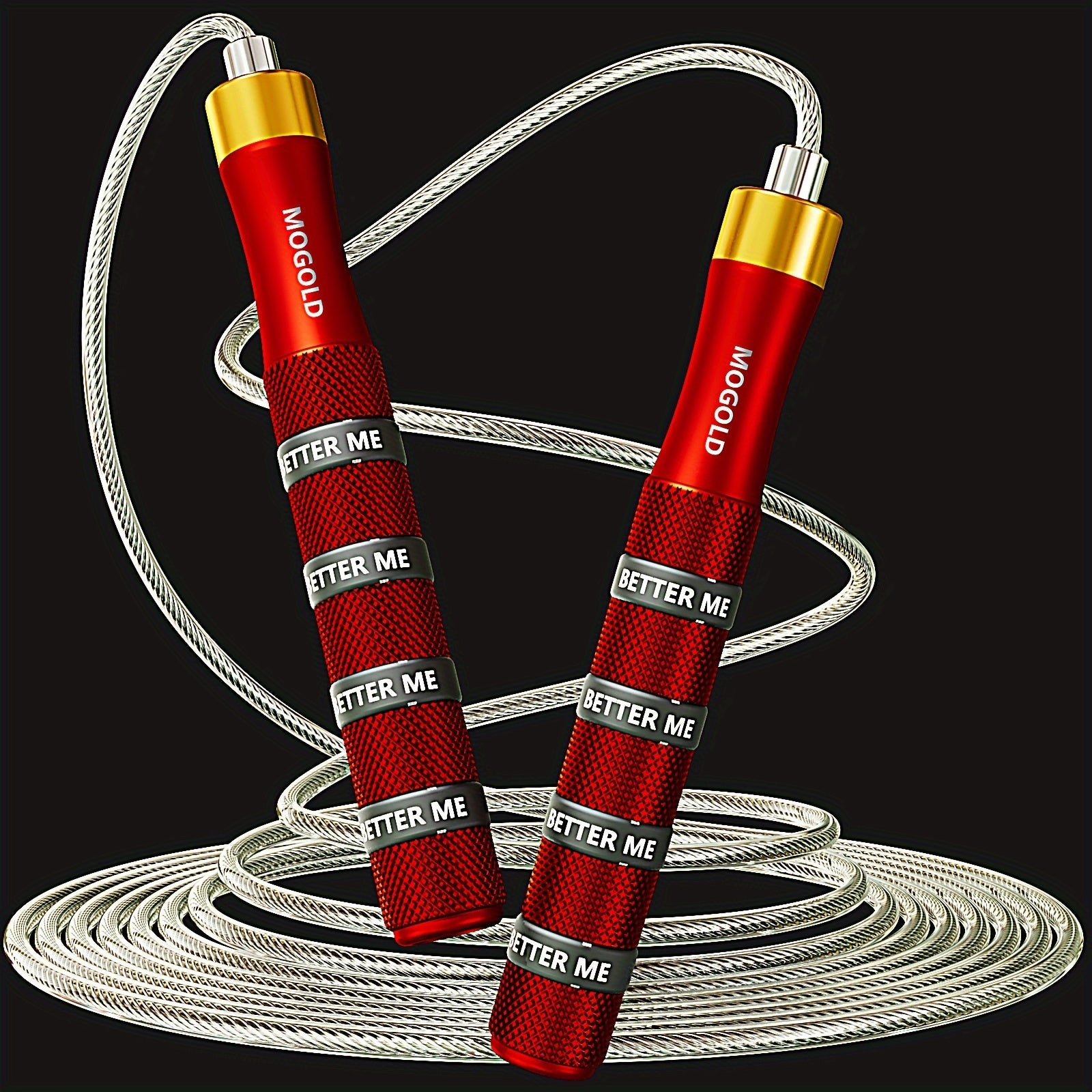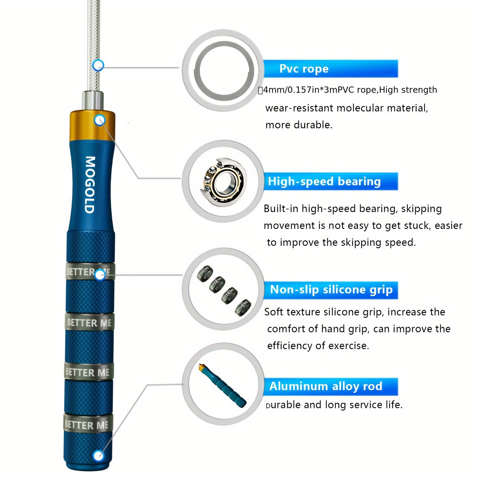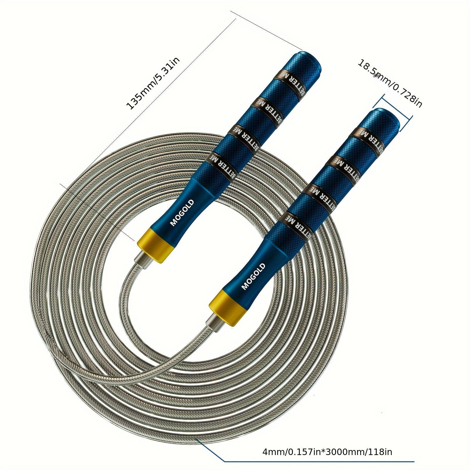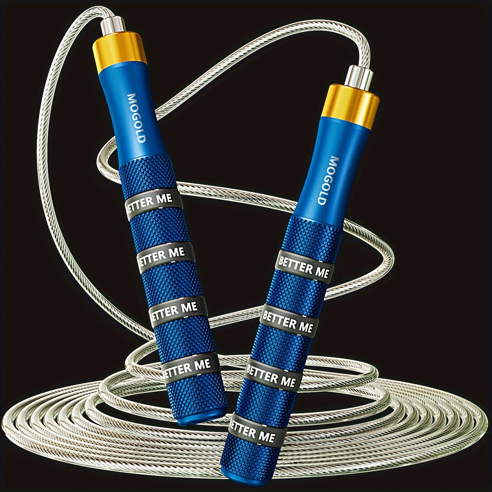 MOGOLD Adjustable Speed Jump Rope - Stainless Steel Metal Construction, 360° Spin Ball Bearing System, Silicone Grip Handles, Exercise & Fitness Skipping Rope for Adults, 14+ Age Group, Aluminum Alloy & PU Cable, Uncharged O
