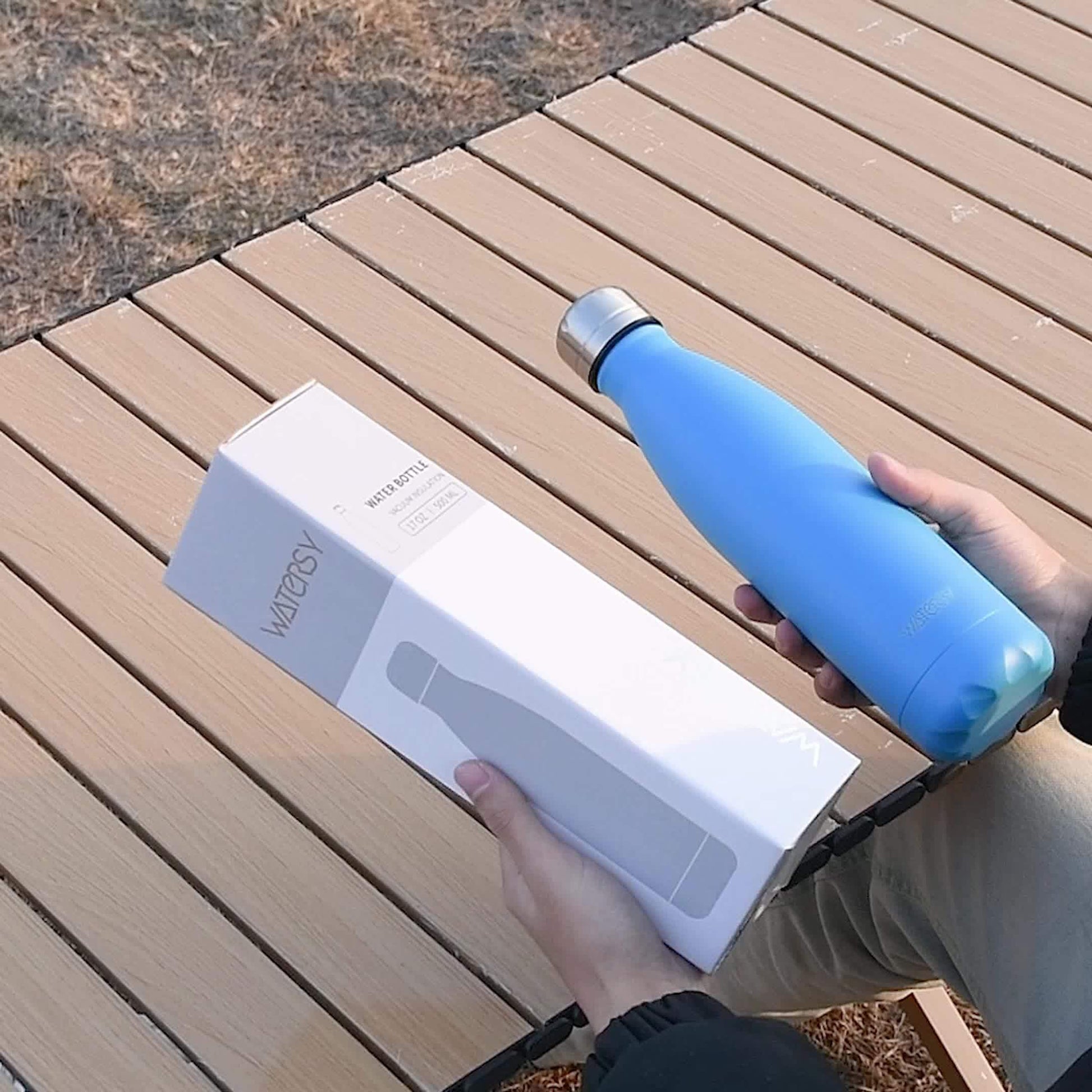 1pc WATERSY 17Oz/500Ml Outdoor Water Bottle 304 Stainless Steel Insulation for Heat Preservation And Cold Preservation with White Card And Silver Hot Stamping Box 2 Sealing Rings