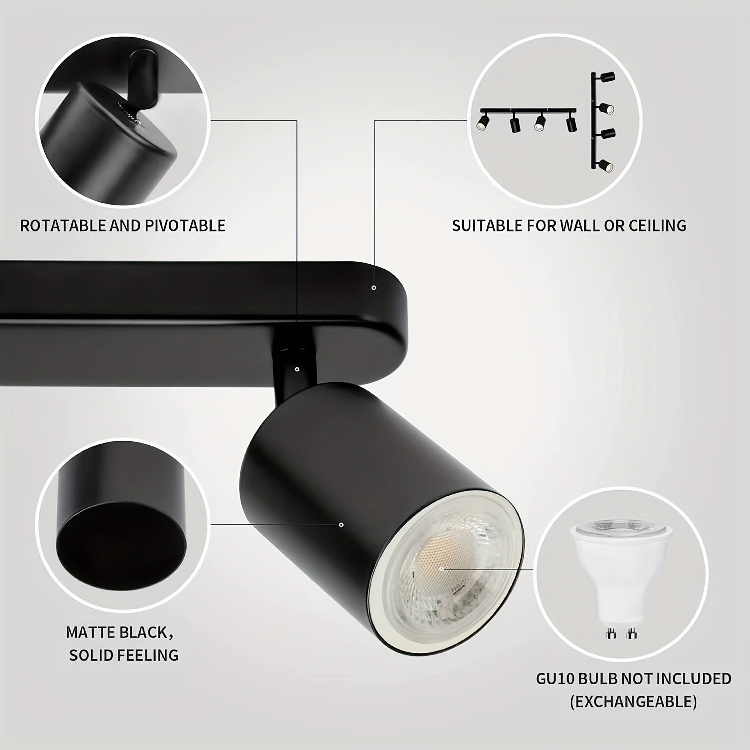 4-Head Adjustable Spotlight Ceiling Light Fixture - Modern Black Metal Semi-Flush Mount with 4 Adjustable Arms, 110-240V Hardwired, No Battery Needed, Easy Installation for Living Room, Bedroom, Office, Kitchen, Bathroom, Cei