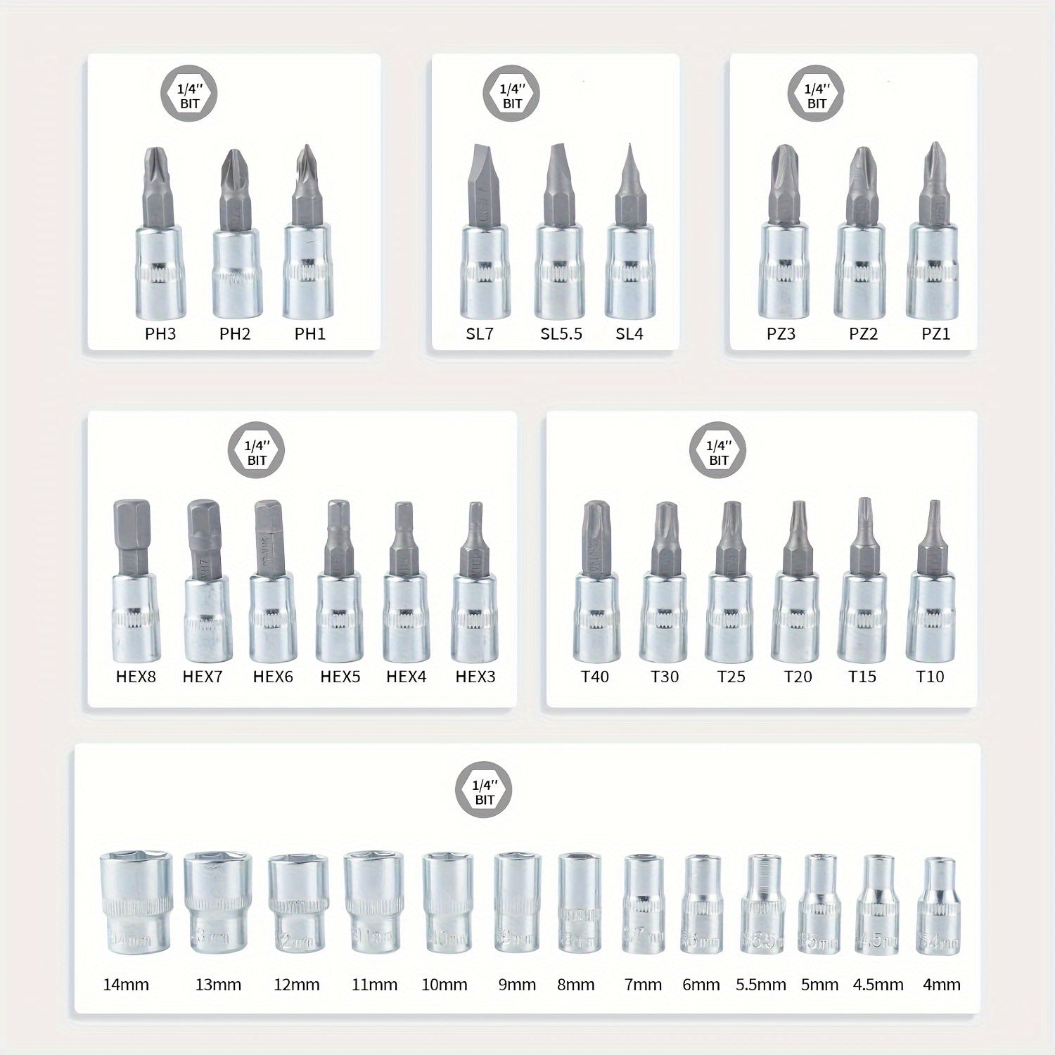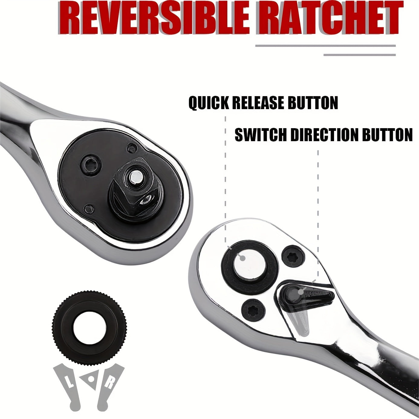 Kit de ferramentas para reparação de automóveis com 46 peças, conjunto de chaves de roquete de 1/4" com conjunto versátil de chaves de caixa e extensão, kit de ferramentas combinado para reparação de automóveis, motos e bicicletas.