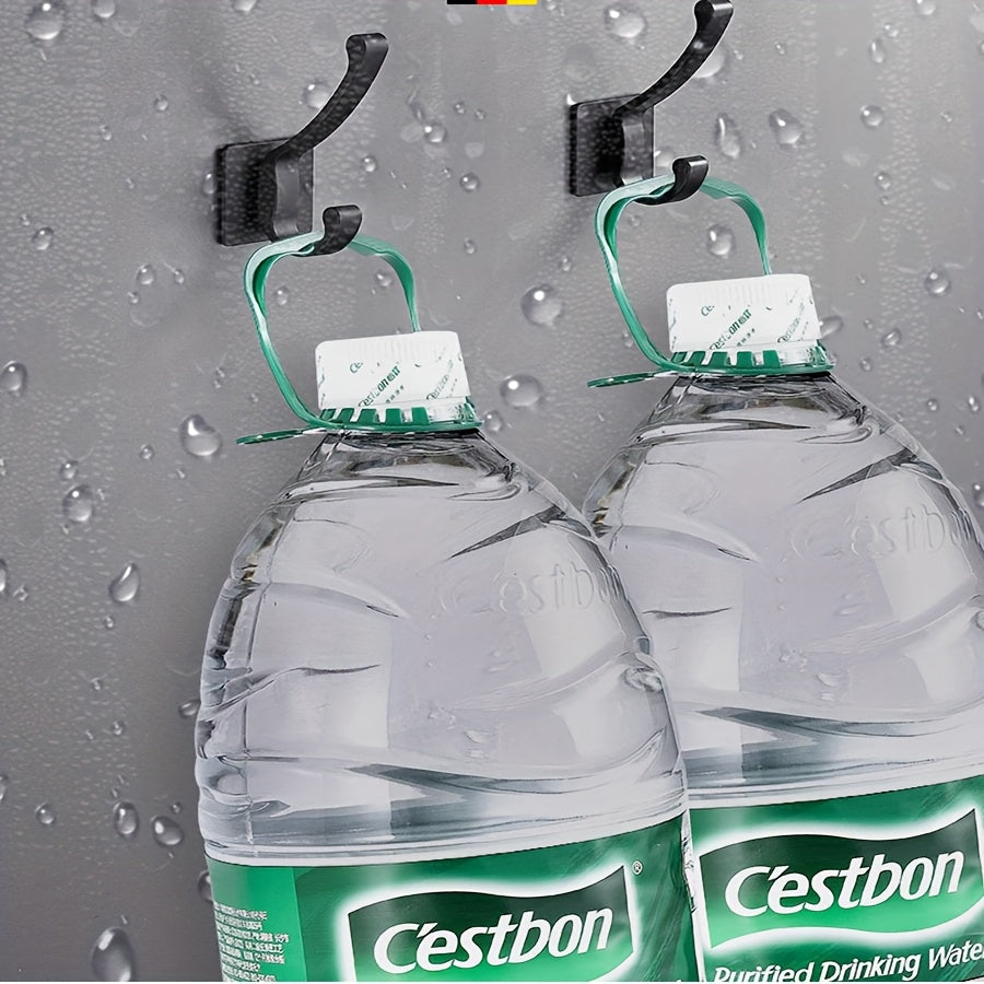 4pcs Self Adhesive Hooks - No-Drill Wall-Mounted Towel & Robe Hangers, Space-Saving Aluminum Powder-Coated Black Hooks for Bathroom, Bedroom, Kitchen - Versatile Storage for Clothes, Hats, Towels, Bathroom Organization, Sleek