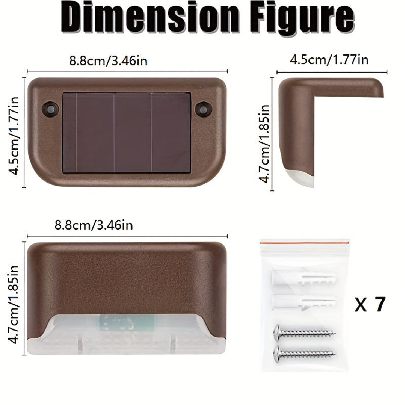 7pcs Solar Deck Lights by HOTU - Warm White LED for Outdoor Stairs, Fence, Garden, Balcony, Yard, Patio & Pathway Decor -, Commercial Emergency Luminaires, Battery-Powered, Plastic Shade, Solar Lights for Outside