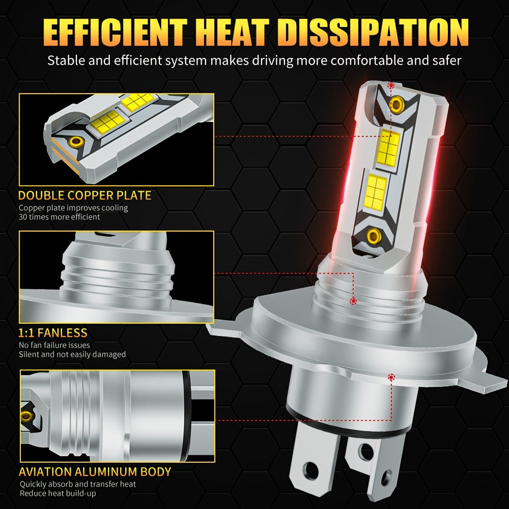 AILEO 2pcs High-Quality H4 LED Lights, 18000LM 60W Car Headlamps with High/Low Beam, 6000K White Light, Aluminum Body, Plug & Play, No Battery Needed, Perfect for Motor Vehicles, Automotive Lighting | Modern Car Accessories |