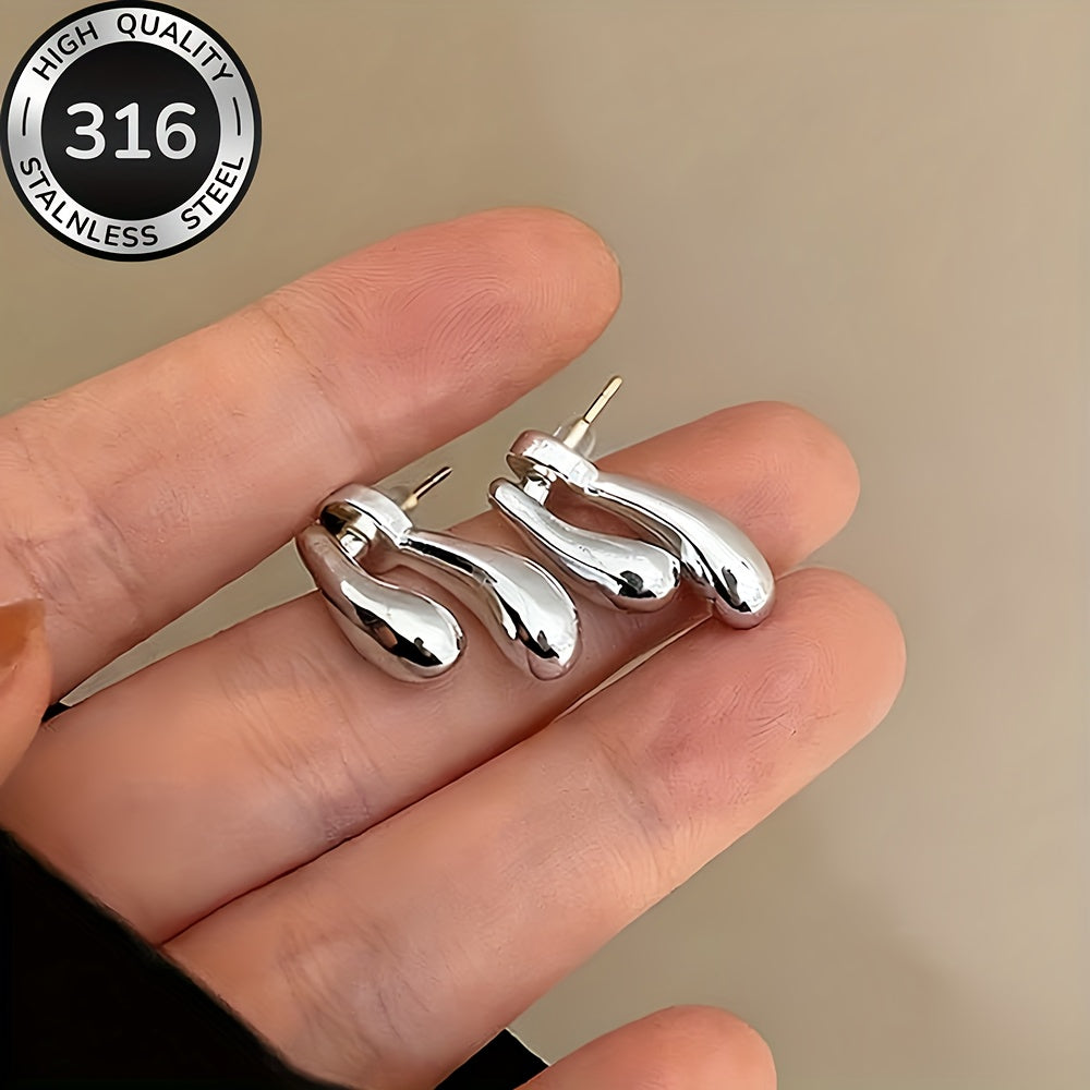 AIVEO Women's Hypoallergenic Stainless Steel KC Golden Plated (KC Golden) Teardrop Earrings - Anti-Fade Sensitive Beige Dainty Studs, Minimalist Elegant Drop Jewelry for Daily Wear, Parties & Sensitive Nose/Piercing, Year-Rou