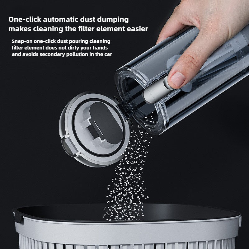 Perfeito para carros, casas e escritórios, este modelo leve e ergonómico oferece potente sucção, recarga USB rápida e um sistema prático de esvaziamento com um só botão.