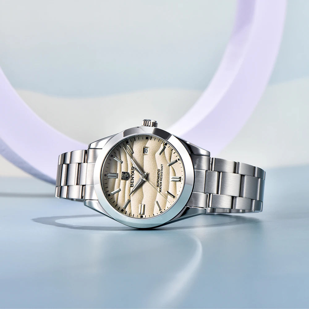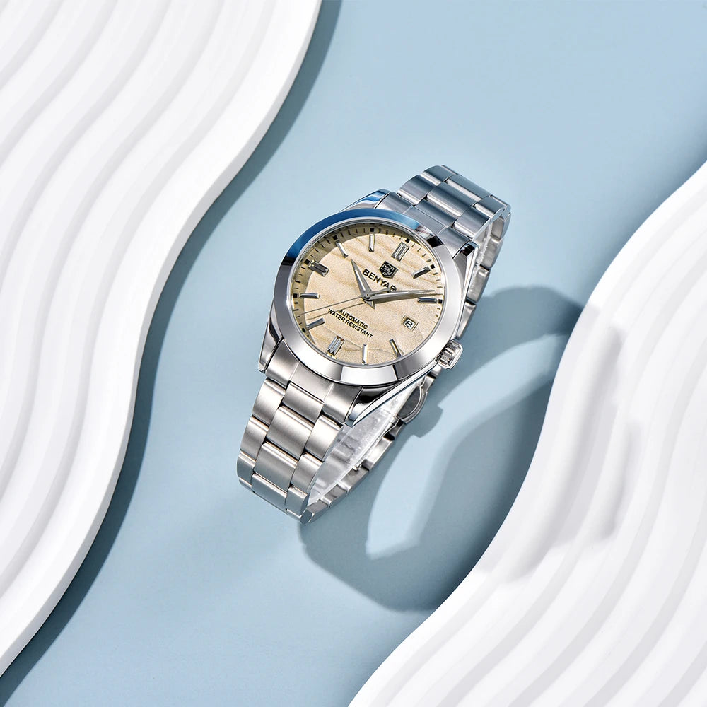 BENYAR 2024 New 40MM Desert Texture Luxury Men's Night Light Stainless Steel Men's Automatic Mechanical Watches BY-5208 Reloj