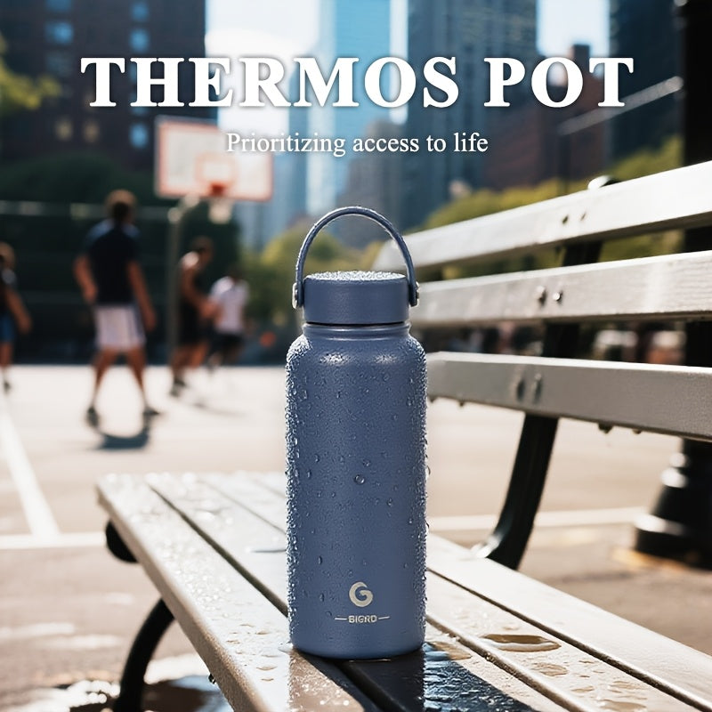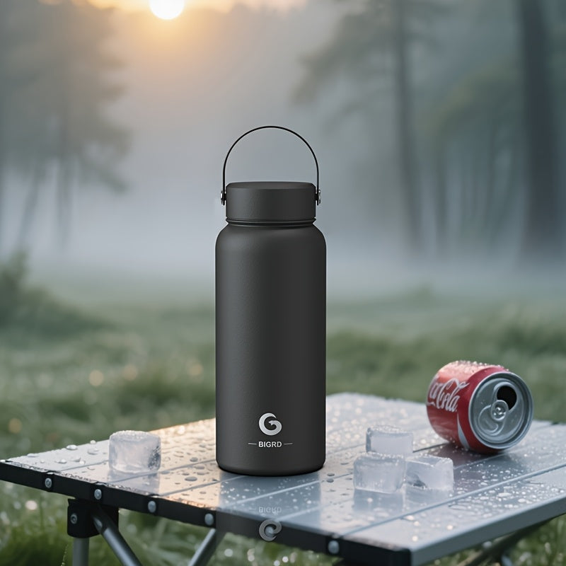 BIGRD 1000ml stainless steel sports Bottle leak proof water bottle double cap Bottle suitable for carbonated water bottle, silicone handle cap/direct drinking cap, suitable for sports/outdoor/camping/fitness/yoga, Yoga Gear,