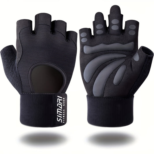 Unisex Fitness Gloves with Full Palm Anti-Slip Silicone, 5mm Cushioned Sponge, Half-Finger Professional Half-Finger Gloves for Outdoor Sports Cycling, Adjustable Wrist Strap, Ergonomic Design, Gym Accessories
