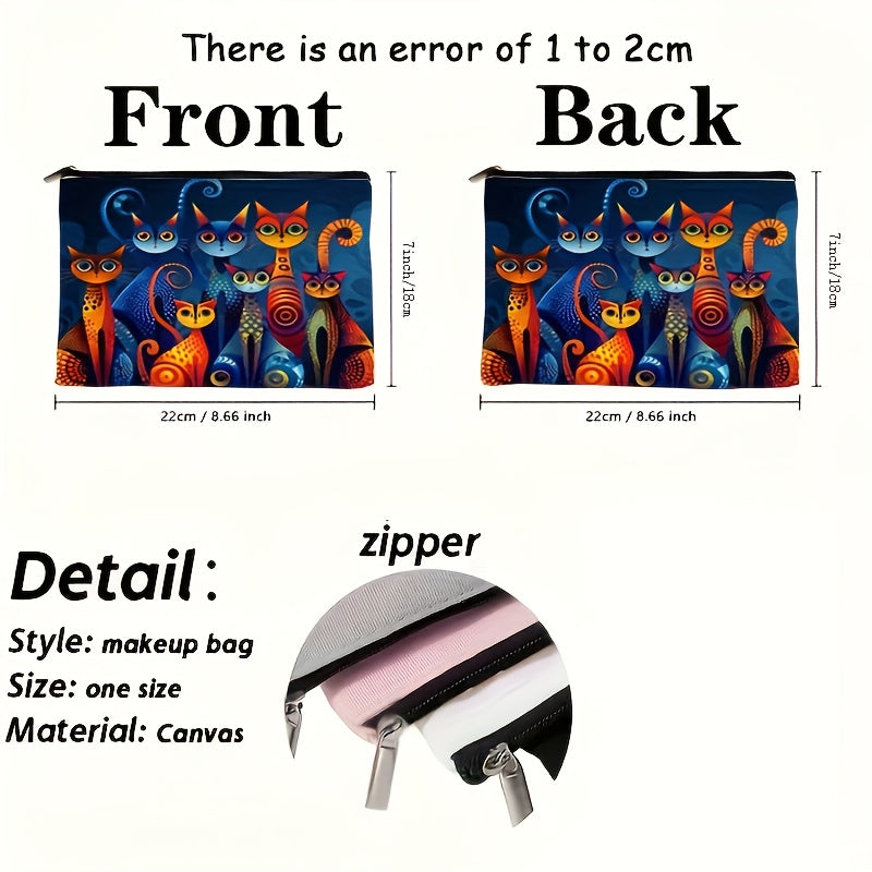 Colorful Cat Design Makeup Bag with Zipper - Lightweight, Foldable Travel Cosmetic Pouch & Toiletry Organizer - Ideal Gift for Women, Teachers, and Friends - Casual Style, Easy to Clean, Travel Makeup Bag|Whimsical Cat Design