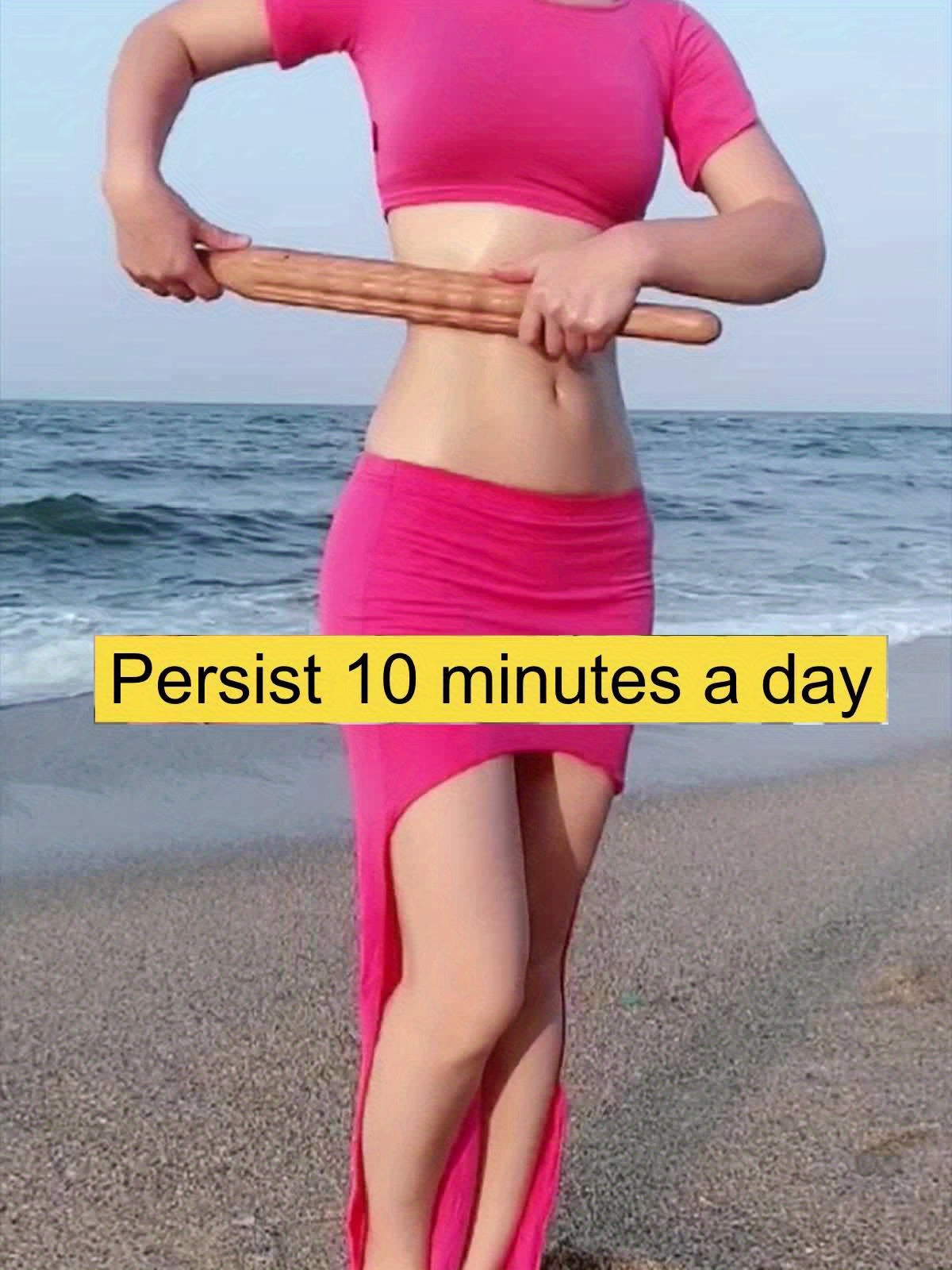 Double Row 20 Beads Carbonized Massage Stick - High Quality Wooden Meridian Roller, Suitable for the Whole Body, Professional Abdominal Gua Sha Tool, Health Care Massage Tool, Suitable for Waist/Abdomen/Legs/Hands/Back Body S
