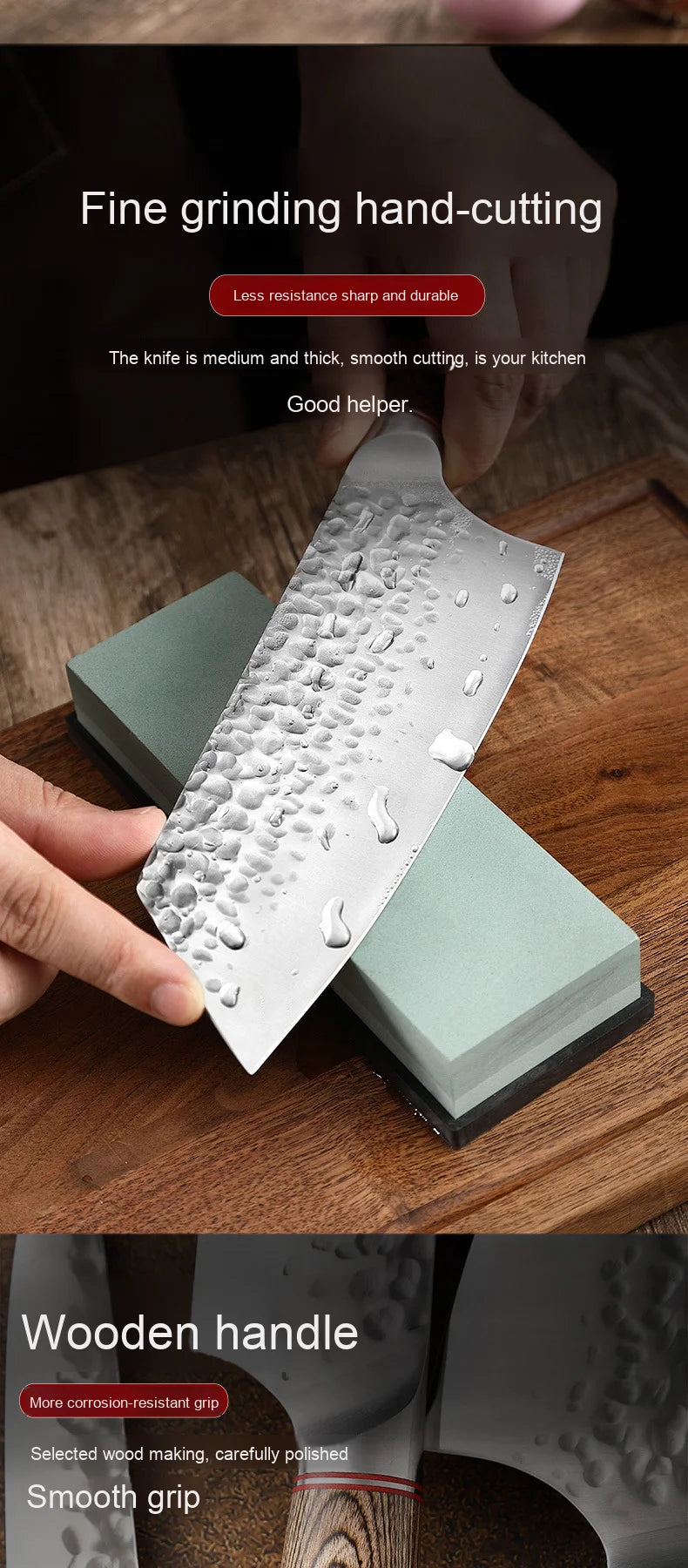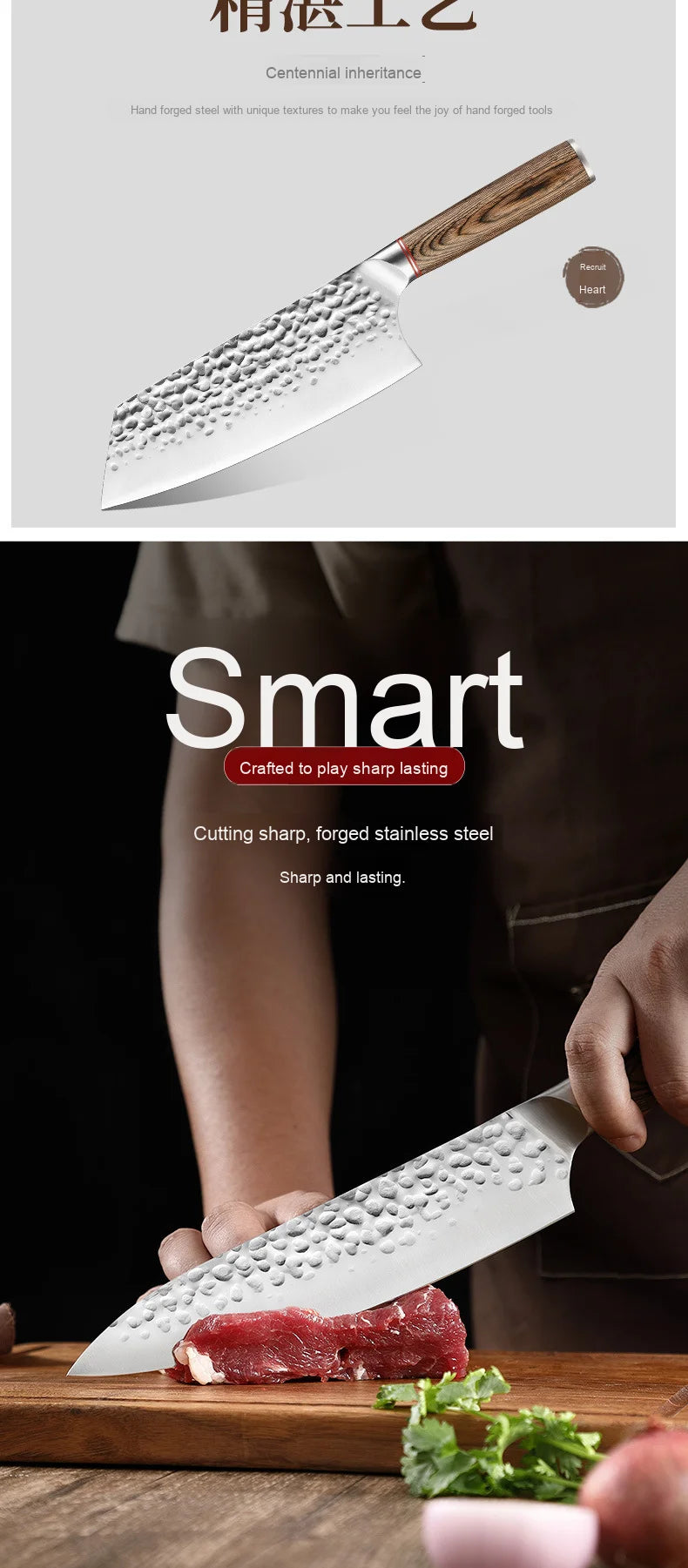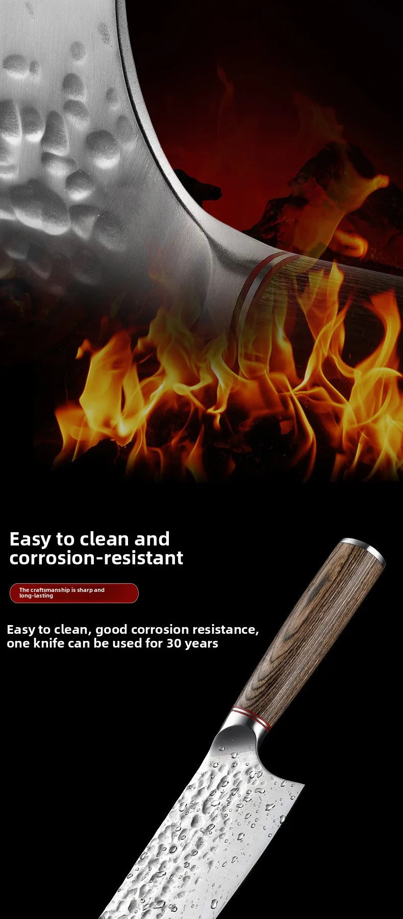 Tecnologia de núcleo de aço composto: estrutura sanduíche com camada exterior de aço Damasco (decorativa) + camada interior de aço de alto teor de carbono (funcional), que alia estética e praticidade.