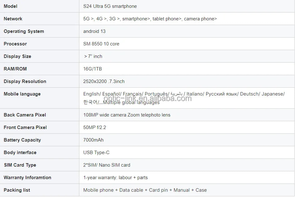 Número do modelo : S24 Ultra (L26A)